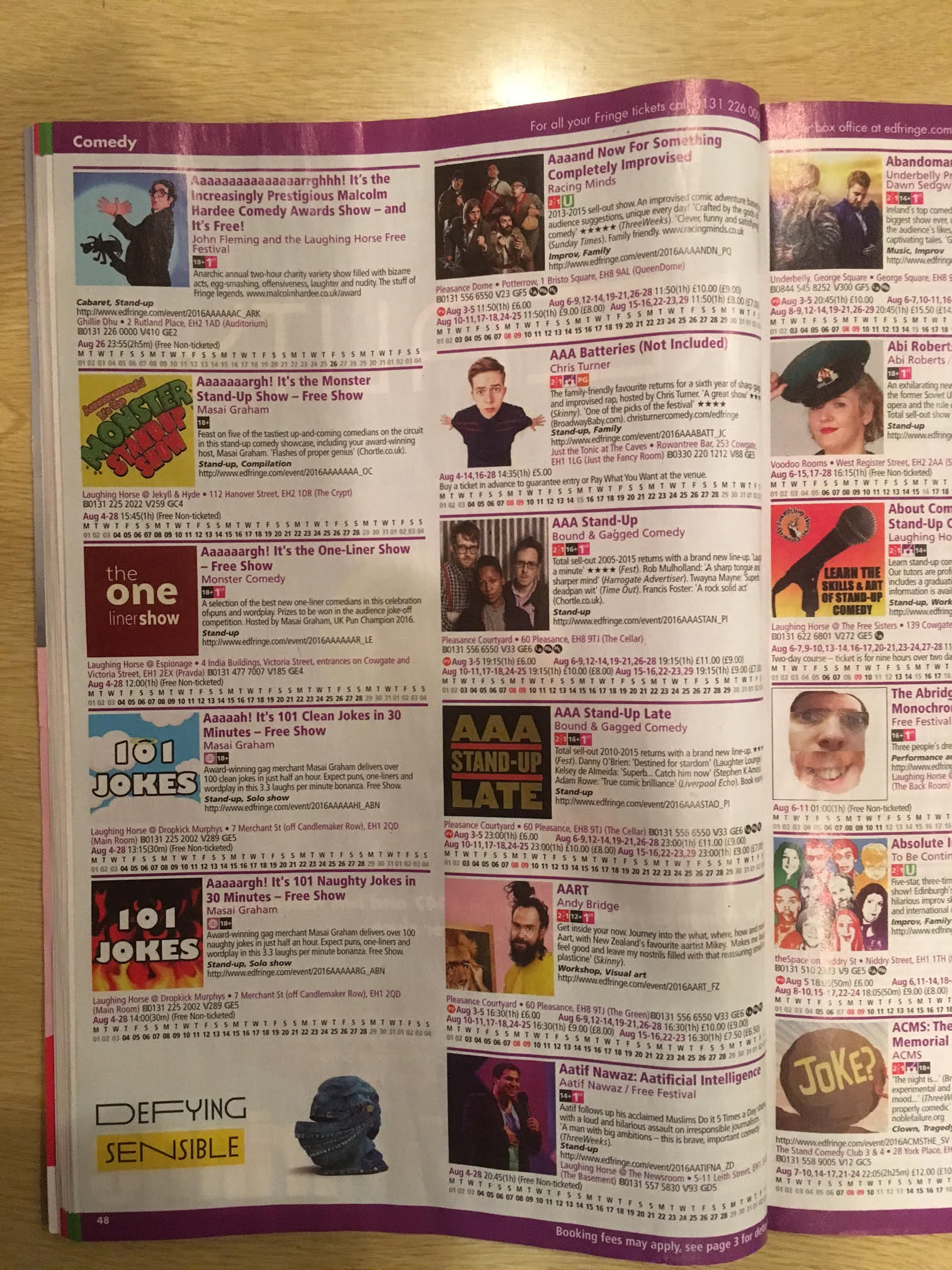 Rather than pester teachers to give him ‘A’s regardless of his work, grades, or intelligence, John has found it useful to use a string of ‘A’s in naming his shows. For example, he got first billing in this year’s Edinburgh Fringe Catalog with his show called Aaaaaaaaaaaaaaarrghhh! It’s the Increasingly Prestigious Malcolm Hardee Comedy Awards Show – and It’s Free!