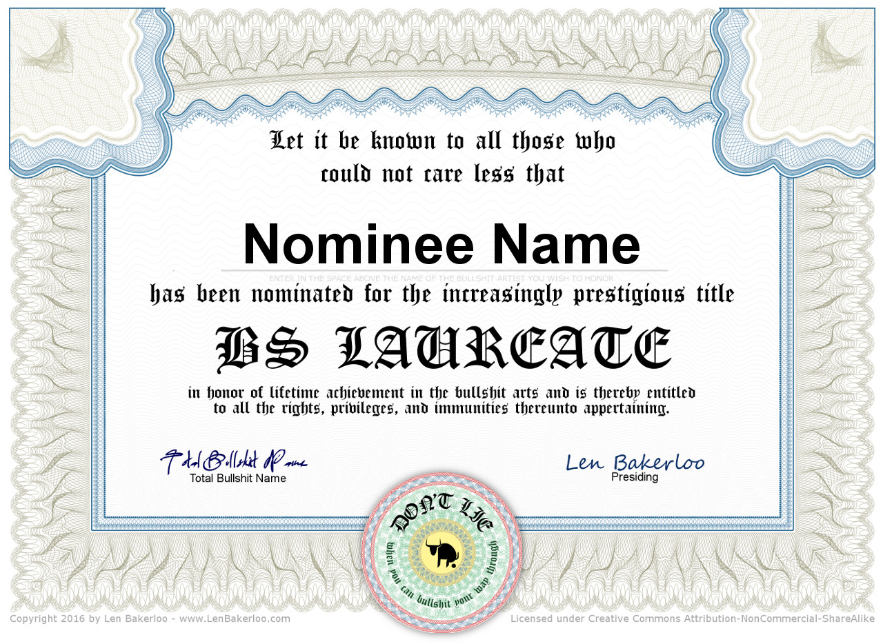 We reserve the right to ignore any nomination we deem to be insufficiently bullshitty.